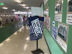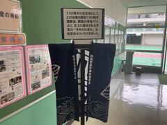 正面玄関に150年を記念して、PTA及び150周年協賛会の皆様から寄贈していただきました法被が展示されました。