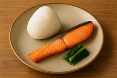 当時の献立は、おにぎり、焼き魚(鮭の切り身)、漬物といった質素なものでした。