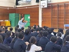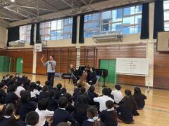 エルガー作曲「愛のあいさつ」や、サン=サーンス作曲「白鳥」など、さまざまな曲を演奏していただき、児童は美しい音色に聞き入っていました。