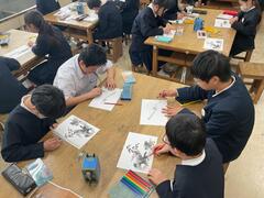 北斎美術館の方を講師としてお招きし、北斎についての授業を行っていただきました。今も愛され、様々なところで活用される北斎の絵に、親しむことができました。