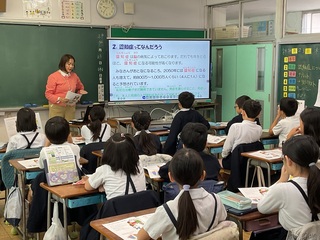 5年生は総合的な学習の時間に、防災について学習を進めています。10月30日には、墨田区防災課の方々をお招きし、災害への備えについてお話をしていただきました。