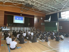 「災害が起きたとき、何が必要なのか」「どこに避難すればよいのか」など、実際の場面を想定した具体的なお話に、児童たちは真剣な表情で耳を傾けていました。自分のこととして考えながら、熱心にメモを取る姿も多く見られました。