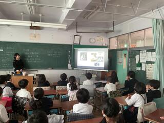 1〜4年生は、校長による絵本『ヒロシマ』の読み聞かせ動画を各教室で視聴し、平和について思いを巡らせました。また、5・6年生は体育館にて、原爆体験伝承者の方のお話を直接伺いました。貴重な講和に、真剣に耳を傾ける姿が見られました。