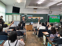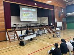 11月20日の木曜日4時間目に、5年生を対象に防衛省・自衛隊の方をお招きし、出前授業を行いました。授業では、災害が発生したときに自衛隊がどのような活動をしているのか、実際の事例を交えながら詳しく教えていただきました。救助活動や物資輸送、避難所の支援など、私たちの安全を守るために多くの人が協力していることを知り、子どもたちは真剣な表情で話を聞いていました。