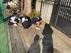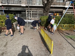 学校の校庭を中心に、落ち葉やごみを丁寧に拾い、きれいにしました。