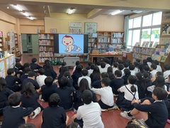 本日、朝の時間には「そよ風文庫」の皆様による読み聞かせが行われました。