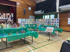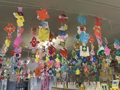 展覧会のなかよし班制作「カラフルカーテン」です。