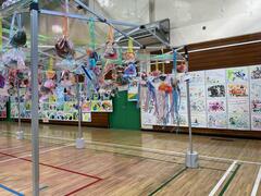 体育館では、子供たちの歌声や演奏がBGMとして流れ、