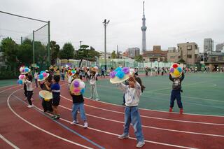 During the third period, all the students took part in a balloon release. After the Student Council’s ‘San-Azu History Quiz’ and interviews, each grade received their balloons. With a cheer, they released the balloons into the sky, each carrying a wish. The sight of colorful balloons soaring high was truly moving, and the children kept looking up as the balloons grew smaller and smaller.