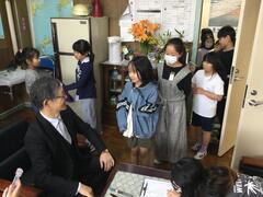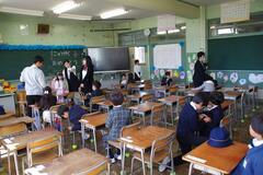 Today, the school entrance health checkup was conducted for children who are scheduled to enter elementary school next year. The fifth graders played an active role as escorts.