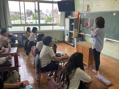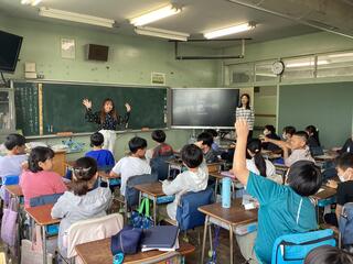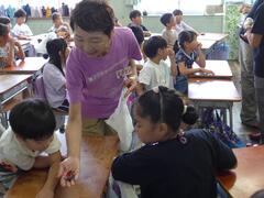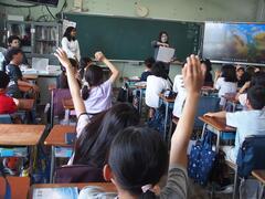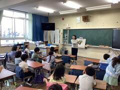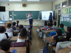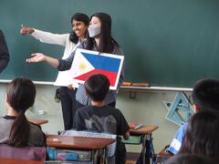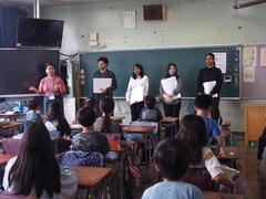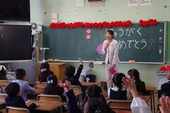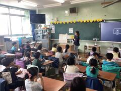 Starting today, we have a new English teacher. Ms. Netti, who is from the Philippines, has joined us. Welcome to San-Azu Elementary School!