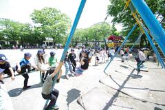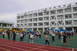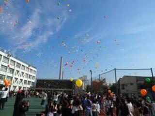 During the third period, all the students took part in a balloon release. After the Student Council’s ‘San-Azu History Quiz’ and interviews, each grade received their balloons. With a cheer, they released the balloons into the sky, each carrying a wish. The sight of colorful balloons soaring high was truly moving, and the children kept looking up as the balloons grew smaller and smaller.