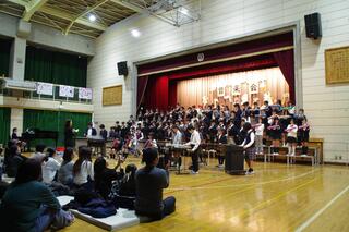 Since it was the first time the first-grade students participated in the whole school assembly, we introduced the 95 first-grade students to the second to sixth graders.