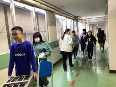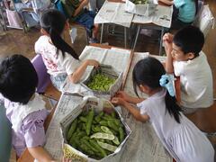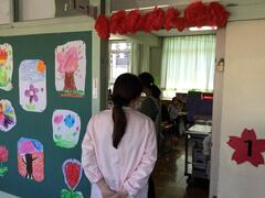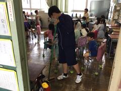 After the other grades have gone home, the sixth graders prepare the first-graders' classrooms and gymnasium for tomorrow's entrance ceremony. Each student is actively participating, which is very encouraging.