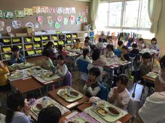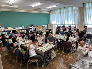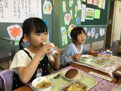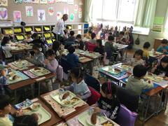 今日からおいしい給食が始まりました。今日は、午後、新しい1年生が入学してきます。楽しみです。