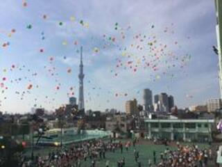 学年ごとに風船を受け取り、掛け声とともに願いを込めた風船が空に放たれました。
