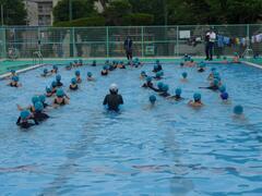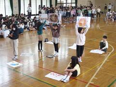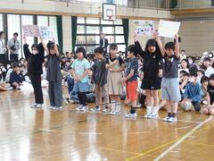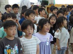 The fifth graders recited "San-Azu Elementary School's Promises" to the rhythm of "Eho, Eho."