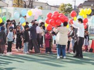保護者のみなさんから風船を