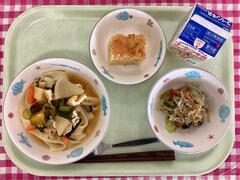 ブリは冬に旬を迎えるお魚です。今日は下味をしっかりつけて焼いた後、照り焼きのたれを上からかけました。身がしまっていて少し硬い食感でしたが、皆さんよく食べていました。三吾のみなさんはお魚好きが多いですね!わかめごはんはやはり大人気で1年生からも「おいしい!」の声がたくさん聞こえてきました。