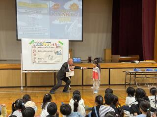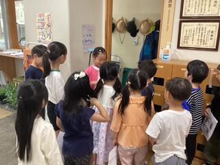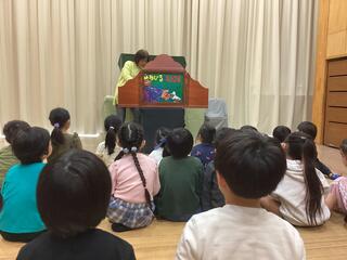読み聞かせボランティアさんによる「おはなし会」がありました。導入で手遊びを行い、素話では日本の昔話を聞きました。その後、紙芝居を見て、最後にパネルシアターを楽しみました。子どもたちは、楽しそうに参加していました。