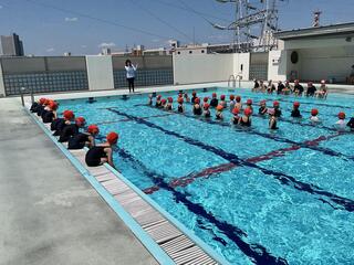 プールの学習では、もぐる・浮くなどの水遊びを楽しんでいます。子供たちは特に「宝探し」が大好きで、水底にある宝を取るため、だんだんと潜る子供が増えてきました。