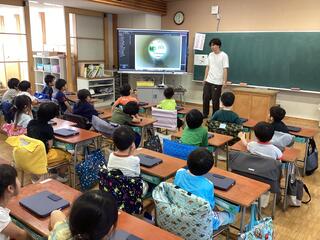 カメラマンさんによる「写真」の出前授業がありました。タブレットで写真を撮り、その中からお気に入りの1枚を選び、タイトルをつけました。子供たちは、楽しみながら活動に参加していました。