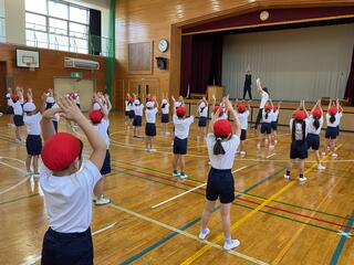 1・2年生で玉入れの練習を行っています。1年生は「チェッコリ」の曲に合わせて元気に踊り、玉入れをします。恥ずかしがりながら踊っている子も見られますが、ノリノリで踊っている子が増えてきたので、本番が楽しみです。