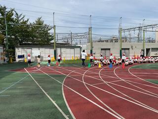体育学習発表会では、1年生は直線のコースを走ります。まっすぐ自分のコースを走る練習をしていますが、まだ自分のコースをはみ出してしまう児童もみられます。前を向き、ゴールを目指して最後まで走りきれるよう、指導しています。当日は、応援よろしくお願いします。