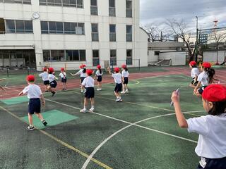 体育科の学習で縄跳びを行っています。前跳び、後ろ跳び、かけ足跳び、片足跳びなどを練習しています。冬休みの宿題にも出していますので、家でも練習を見てあげてください。年明け、学校でも縄跳び練習を行う予定です。