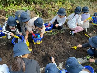 生活科の学習で、チューリップの球根を植えました。4月の入学式では、今の2年生が育てていたチューリップが出迎えてくれたことを思い出しました。来年の1年生のために、きれいな花が咲くように願いを込めて球根を植えていました。寒い冬を乗り越え、花を咲かせることができるよう、一生懸命お世話をします。
