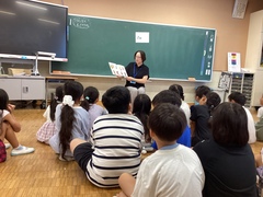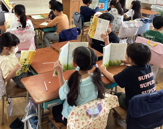 隅田小学校では、月に2回、ボランティア「チャチャの会」が来校し、児童に読み聞かせを行っています。発達年齢にあった絵本を選んでくださるので、子供たちは絵本の世界に入り、すてきな時間を過ごしています。
