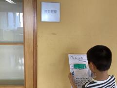 学校探検に向けて練習をしています。1年生に学校の案内をするために学校中の教室についてクイズを作って紹介文を考えています。