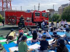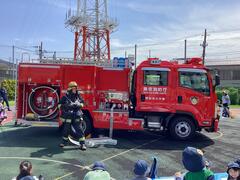 かっこいい消防車と消防士さんが隅田小にやって来ました。