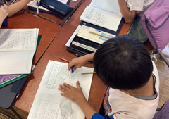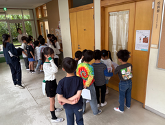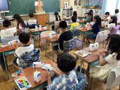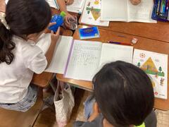 7月に入り、ますます暑い日が増えてきました。子供たちは暑さに負けず、勉強も遊びも楽しんでいます。算数「水のかさ」の学習では色水やカップを使いながらdLやLについて友達と「どっちの方が多く入るかな?」「どうやって比べたら良いのかな」など話し合いながら楽しく学びました。