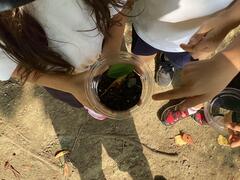 開校20周年の取り組みとして、お気に入りの学校の場所や物を写真に残す活動をしています。プロのカメラマンをゲストティーチャーに招き、写真の撮り方を教えていただきました。自分だけのお気に入りの場所をそっと伝えるすてきな写真が仕上がりそうです。子供たちの目から見えている景色をぜひ楽しみにしていてください。