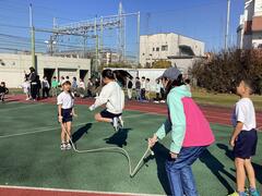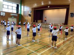 体育の授業や休み時間に、みんなで練習に取り組みます。