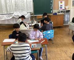 国語の授業で学習している「ふきのとう」の音読会に向けてグループで練習している様子です。