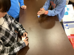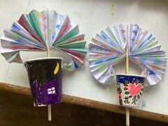 国語の学習で「紙コップ花火の作り方」を学習しています。自分たちで教科書の説明文を読み取り、紙コップ花火を説明書通り作るためにはどんな言葉に気を付ければ良いか考えながら教科書を読み込んでいきました。「長さ」「材料を付ける場所」などに注意しながら素敵な紙コップ花火を完成させることができました。材料のご協力ありがとうございました。