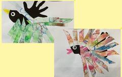 すてきな羽をつけたら、「ふしぎな鳥」ができあがりました。