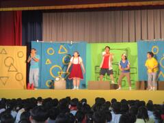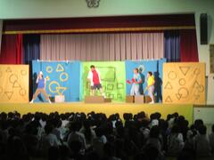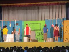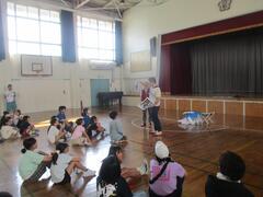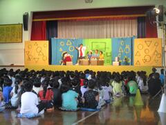 今日は体育館で演劇鑑賞教室がありました。劇団「仲間」の方々が来て、「給食番長」というミュージカルをしてくれました。子供たちもとても面白く、見ることができました。