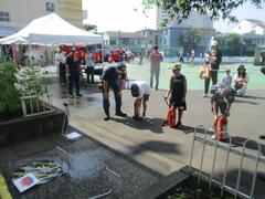 24日は地域主催の防災フェスタを行いました。消化器や放水体験など行いました。最後はドジョウのつかみ取りがありました。