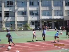 今日は体力テストで、全学年がソフトボール投げを行いました。投げる角度と反対側の腕がポイントです。学年ごとに時間を決めて行いました。前日に先生方がラインを引いてくれたのでスムースにできました。