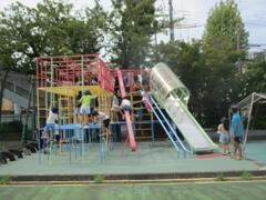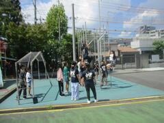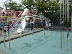プール棟の解体工事のため、校庭の遊具であるジャングラミンやうんてい、登り棒で遊べるのは今週で最後です。今日も暑い日でしたが、昼休みは外遊びができたので遊具で遊ぶことができました。