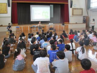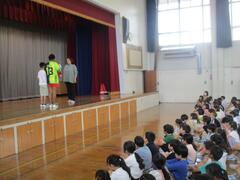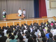 7月10日 児童集会 保健委員会、給食委員会の発表がありました。