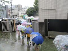 今日は台風による大雨のため、各学年方面別の集団下校を行いました。大雨での下校で大変でしたが、傘のさし方、歩道の歩き方など安全に気を付けて下校しました。