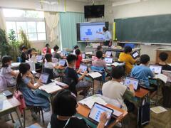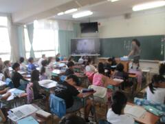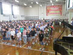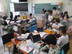 今日は夏休み前の最後の登校日です。朝礼を行い、夏休みの生活についてお話を聞きました。長い夏休み、車に注意するなど安全に気を付けて過ごせるといいですね。今日は、授業で勉強を頑張っているクラス、大そうじやお楽しみ会を行っているクラスもありました。