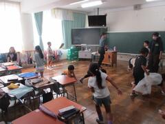 吾二中の生徒たちが職場体験として八広小に来ました。お掃除や給食のお手伝いなどをしてくれました。八広小の子供たちと遊んでくれました。