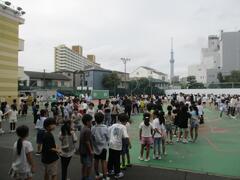 今日の避難訓練は、台風を想定した方面別の集団下校訓練を行いました。色別(方面別)の教室に集まってから、集団で下校しました。緊急時は安全に気を付けて下校できるといいですね。