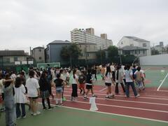 今日は今年度初めての全校での児童集会を校庭で行いました。集会委員が司会やルールの説明などしてくれ、全校で「じゃんけん列車」を行いました。1年生から6年生が仲良く楽しく行いました。