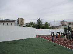 校庭には解体工事のための仮囲いが設置されました。